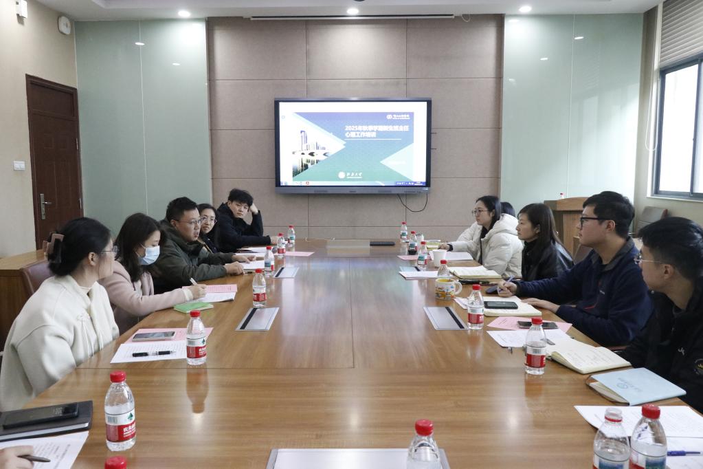11月19日下午,生物工程学院召开2025年秋季学期新生班主任心理工作专项培训会,学院党委副书记、副院长林丹,学院心理辅导员王珏以及2025级本研年级辅导员、班主任参与本次培训。