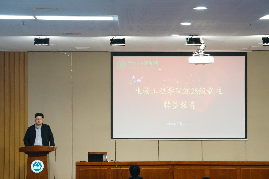10月24日下午,生物工程学院2025级新生转型教育系列讲座在图书馆305报告厅举行,江南大学关工委特邀报告员、博士生导师诸葛健老师作《立足本职 报效祖国-同一年级新同学谈心》主题报告。2025级新生辅导员贺煜添和全体2025级本科