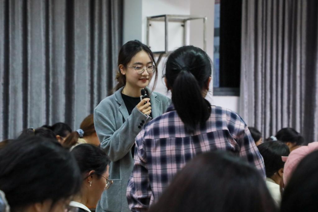 随后,同获科学探究类国家级一等奖李佩琪进行竞赛成果展示。她以获奖项目《花椒麻味感知的中枢机制研究》为例,生动再现答辩路演实况,并从团队组建、任务分配、难题应对及项目推进等角度分享了参赛体会。