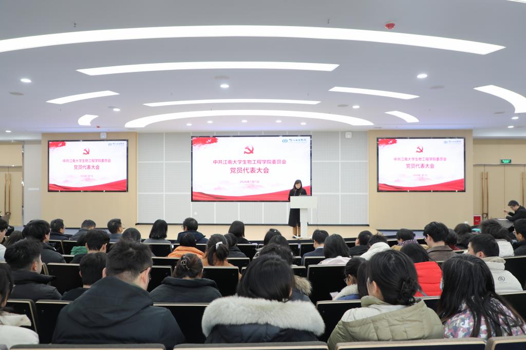 1月7日下午,生物工程学院党委在国工二楼报告厅召开党员代表大会,选举产生新一届党委委员。大会由学院党委副书记兼副院长林丹主持。