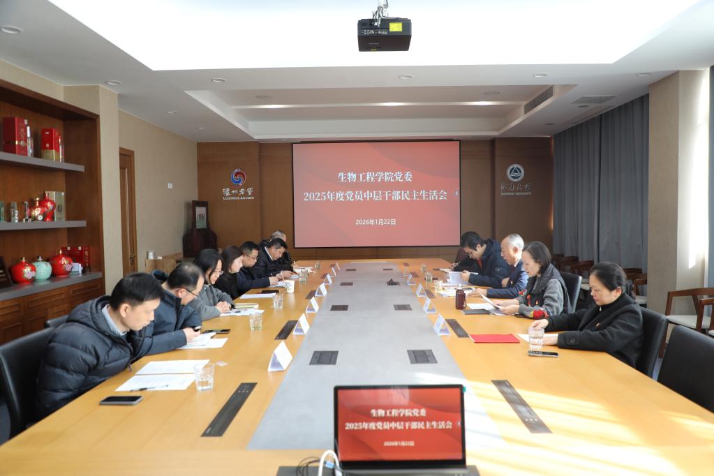 1月22日下午,生物工程学院党委在学院B303会议室召开2025年度党员中层干部民主生活会。校党委常委、党委统战部部长、工会主席朱飞同志到会督导,生物工程学院党委党员中层干部参加会议。会议由学院党委书记程捷音主持。