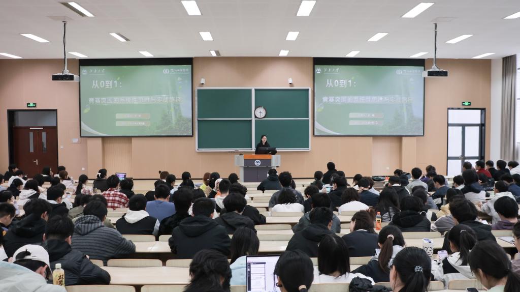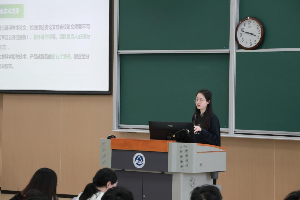 刘畅以《从0到1:竞赛突围的系统性思维与实战路径》为题展开主讲。她结合学院创新创业人才培养体系的建构与实践,将大学生创新创业训练计划项目、全国大学生生命科学竞赛、国际基因工程机器大赛、全国大学生职业规划大赛、“挑战杯”系列竞赛及中国国际大学生创新大赛等赛事串联成线,层层递进、深入浅出地剖析了赛制规则与备赛要点。生动的案例、清晰的路径、实用的方法,让在场学子直呼“干货满满”,也在他们心中悄然播撒下“敢闯会创”的种子。