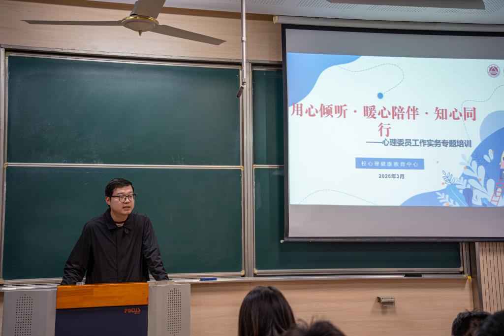 王珏结合工作实际,针对本硕博学段学生的不同特点,分别对各学段心理委员岗位要求、基本素养、工作原则、工作内容以及学生常见的心理问题表现进行了系统阐述。重点强调,朋辈队伍作为班级心理健康“第一瞭望者”,要切实发挥一线观察、及时反馈、主动关怀的重要作用,以责任与细心守护同窗心灵健康,做同学们身边可靠的 “心灵守护者”。